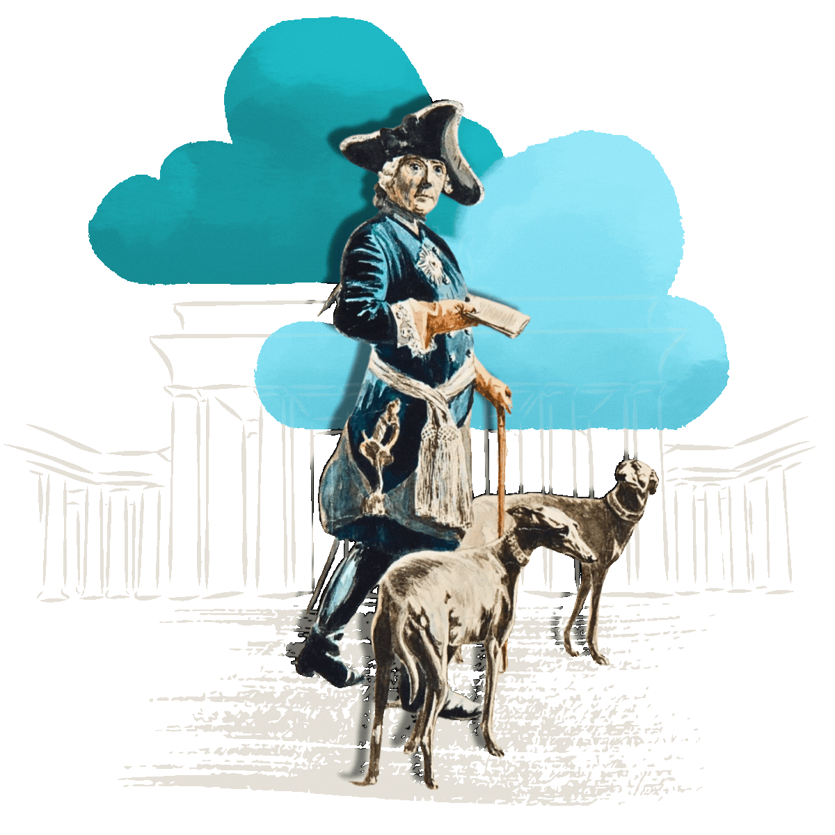 Friedrich der Große and his Dogs adapted from Friedrich Schöbel’s ‘Friedrich der Große mit seinen Windhunden.’